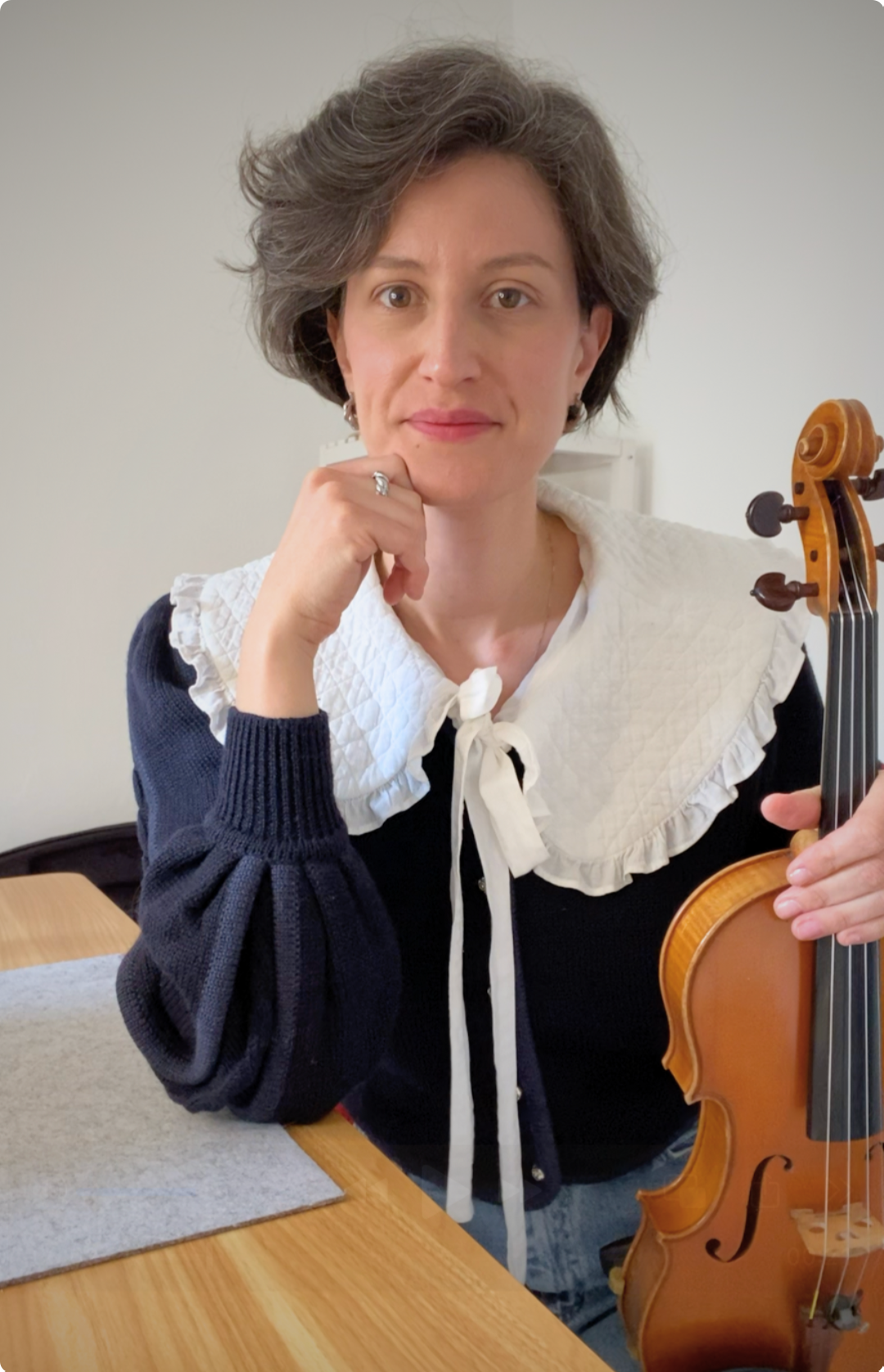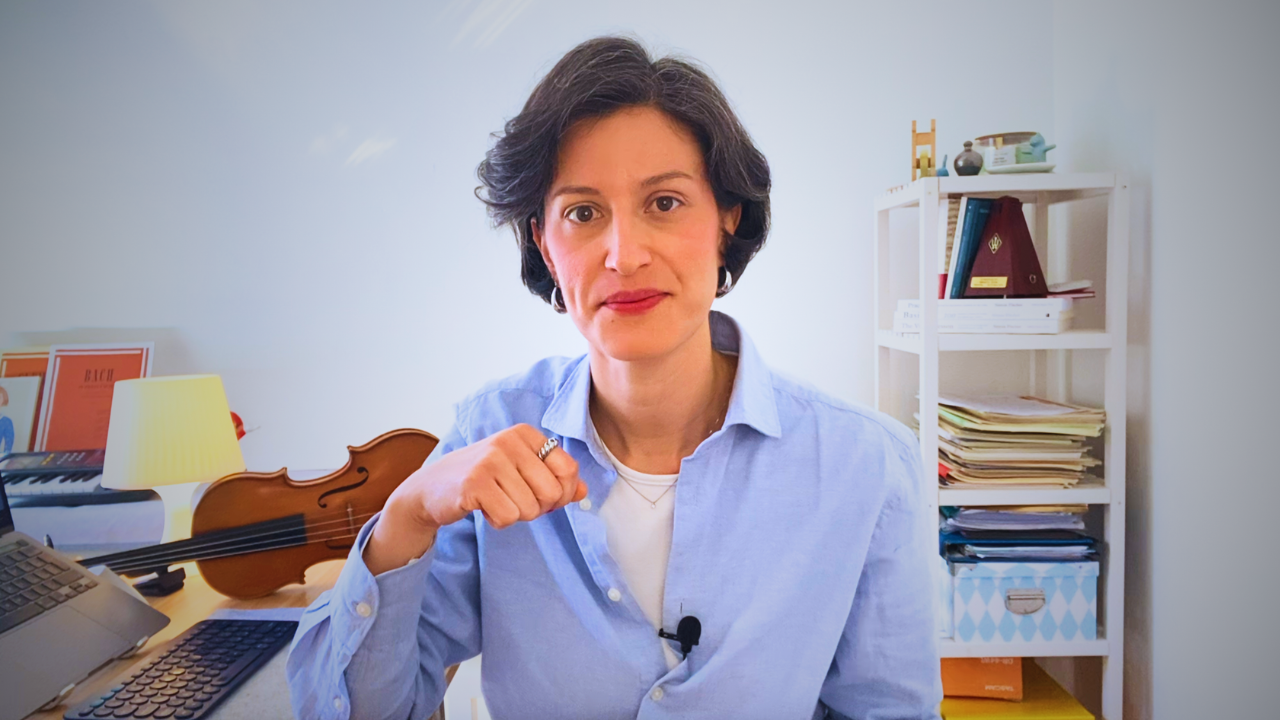 Non deve essere l'esecuzione perfetta, anzi: più sarà naturale, più riuscirò a darti le soluzioni giuste per te. È sufficiente uno smartphone in orizzontale appoggiato sul tuo leggio, in modo che possa vedere arco e mano sinistra nella sua completezza.